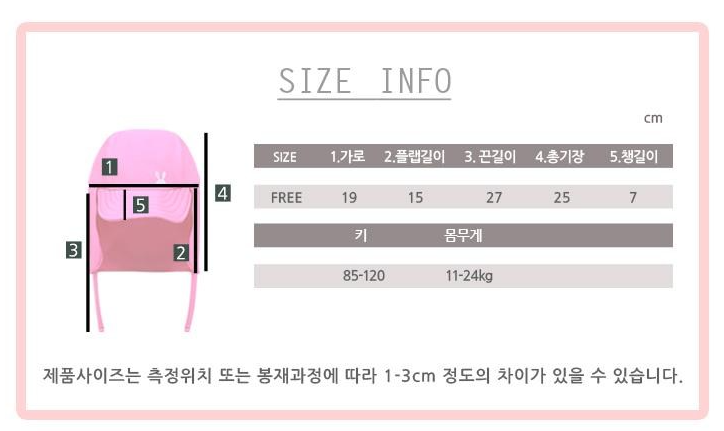 아이가 거부감 없이 쓰고 다닐 수 있는 동물 귀 포인트가 달려있고, 색상은 핑크, 네이비, 민트, 라이트블루로 다양합니다.